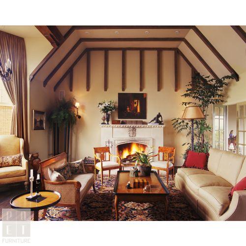 Upholstered seat and back cushions in down/feather wrap